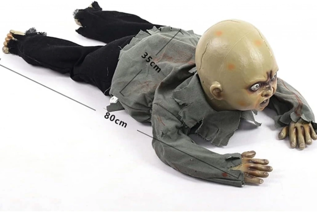 CEYLAN ADAM Sesli Işıklı Ve Sensörlü Yerde Emekleyen Hareketli Bebek Hayalet Zombi Dekor 30x85 Cm