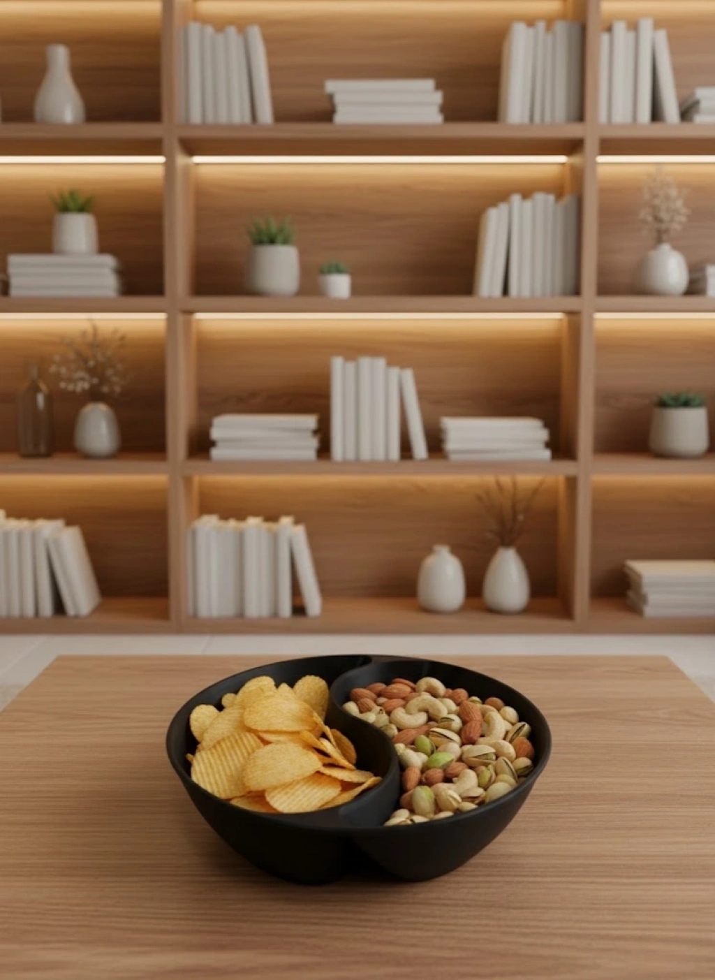 Siyah çerezlik kase seti, modern ve güçlü rengiyle salon ve masa üstü sunumlarına şık bir görünüm kazandırır. 3x12 cm ölçüsündeki kaseler, çerez, kuruyemiş ve atıştırmalıklar için ideal boyuttadır. 4 adetlik set içeriği sayesinde hem günlük kullanımda hem de misafir ağırlarken pratik bir çözüm sunar.Bölmeli tasarımı, farklı çerez çeşitlerini aynı kase içinde düzenli şekilde sunmanıza yardımcı olur. Çerezlerin birbirine karışmasını önleyerek masa üzerinde düzenli ve estetik bir sunum sağlar. Siyah rengi, özellikle loş ama aydınlık salon ortamlarında zarif ve modern bir kontrast oluşturur.Salon masası, sehpa veya TV ünitesi üzerinde rahatlıkla kullanılabilir. Hem işlevsel hem de dekoratif bir çerezlik seti arayanlar için ideal bir tercihtir.