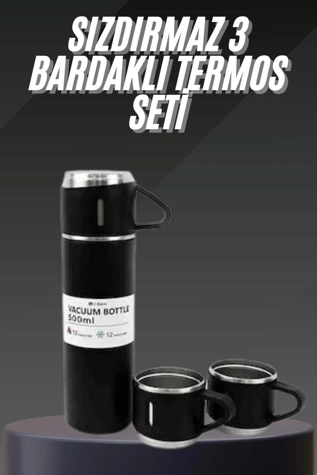 • CEYLAN ADAM Termos Seti Paslanmaz Çelik 3 Bardaklı Vakumlu Termos Set 500 Ml 12 Saate Kadar Isı Koruma