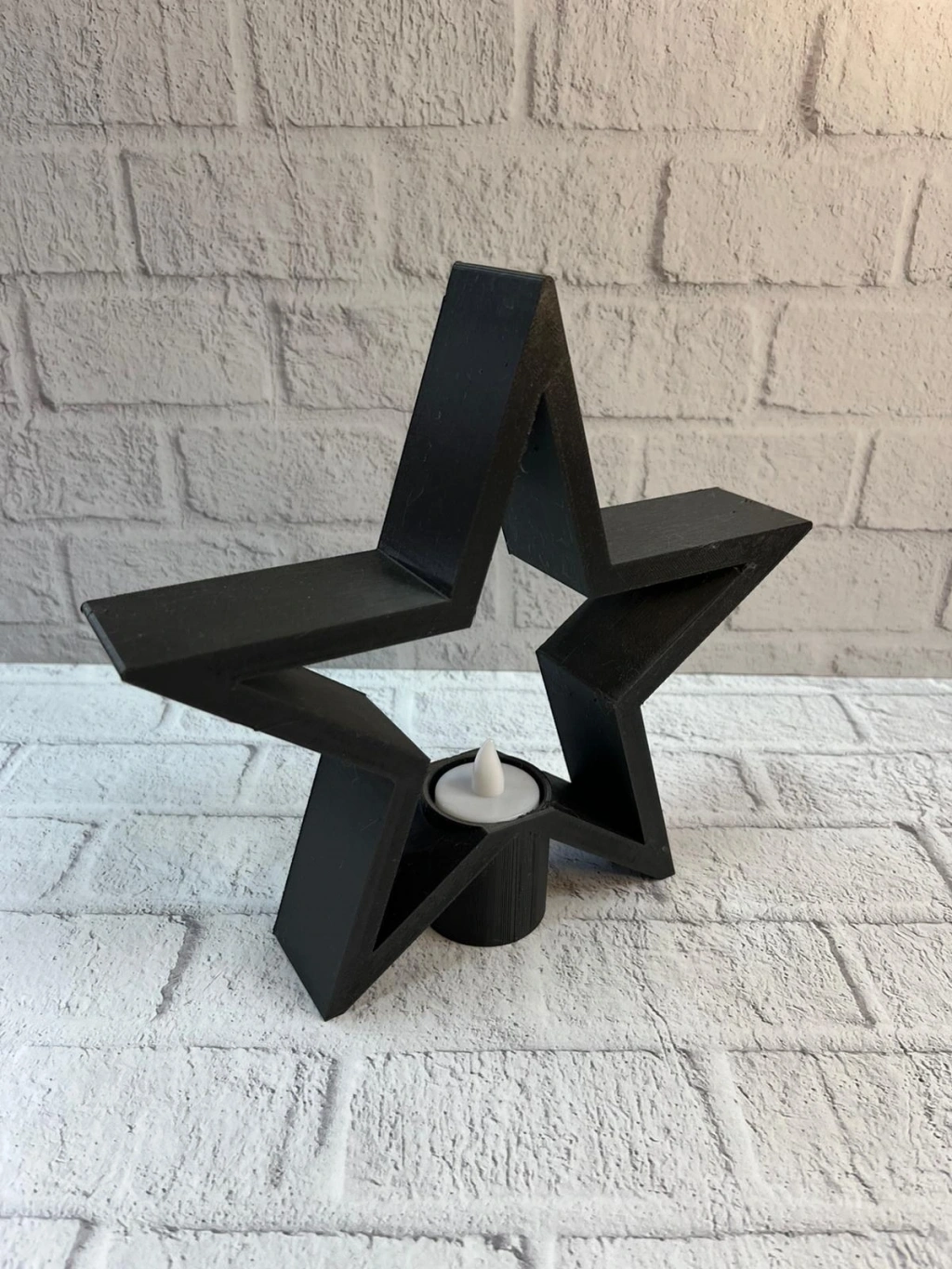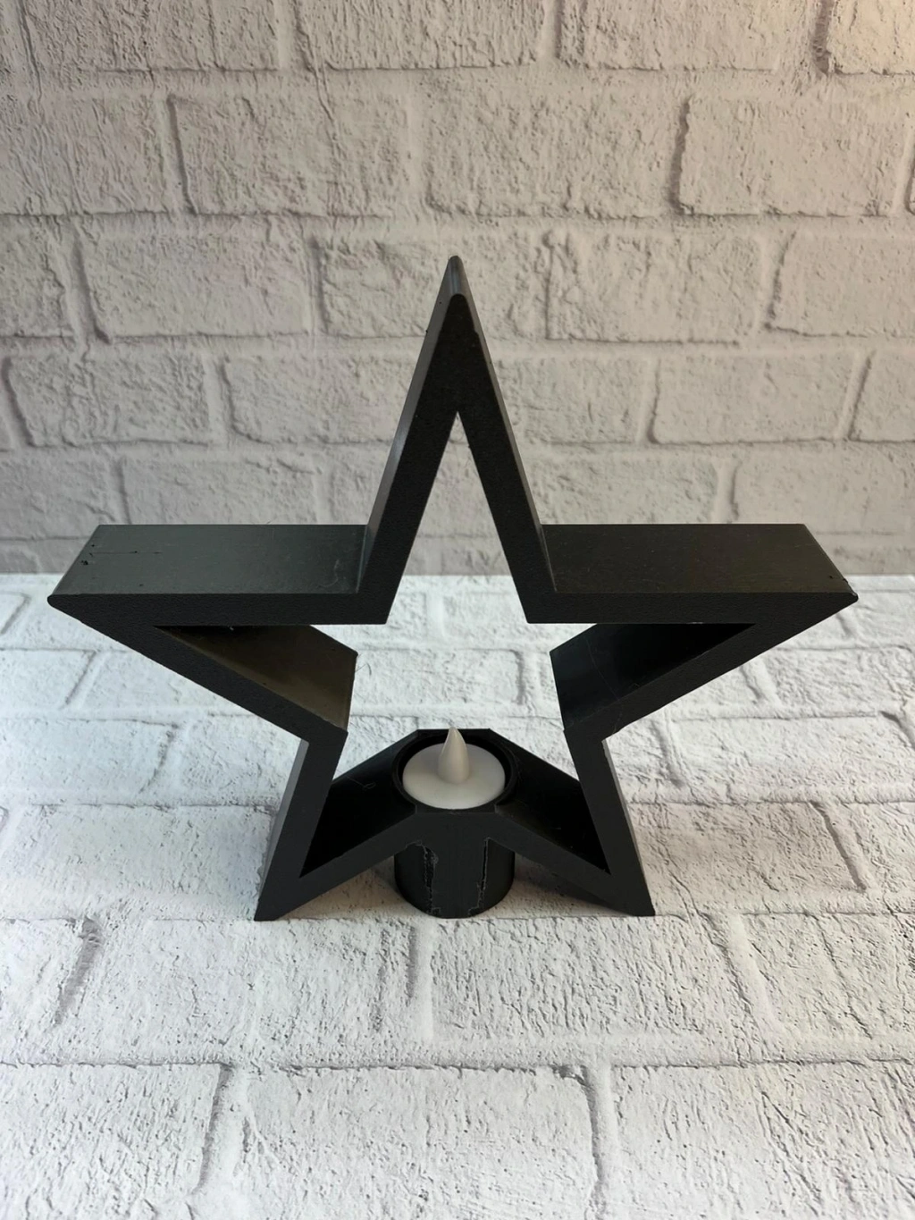 Siyah yıldız formundaki bu mumluk, modern ve minimal dekorasyon sevenler için şık bir tamamlayıcıdır. 21×23 cm ölçüsüyle raf, masa, şifonyer veya TV ünitesi üzerinde rahatlıkla kullanılabilir. Loş ışıkta mum alevinin yarattığı sıcak ambiyans sayesinde salon, oturma odası veya yatak odasında cozy bir atmosfer oluşturur. Mat siyah rengi, hem açık hem koyu tonlu dekorasyonlarla kolayca uyum sağlar.