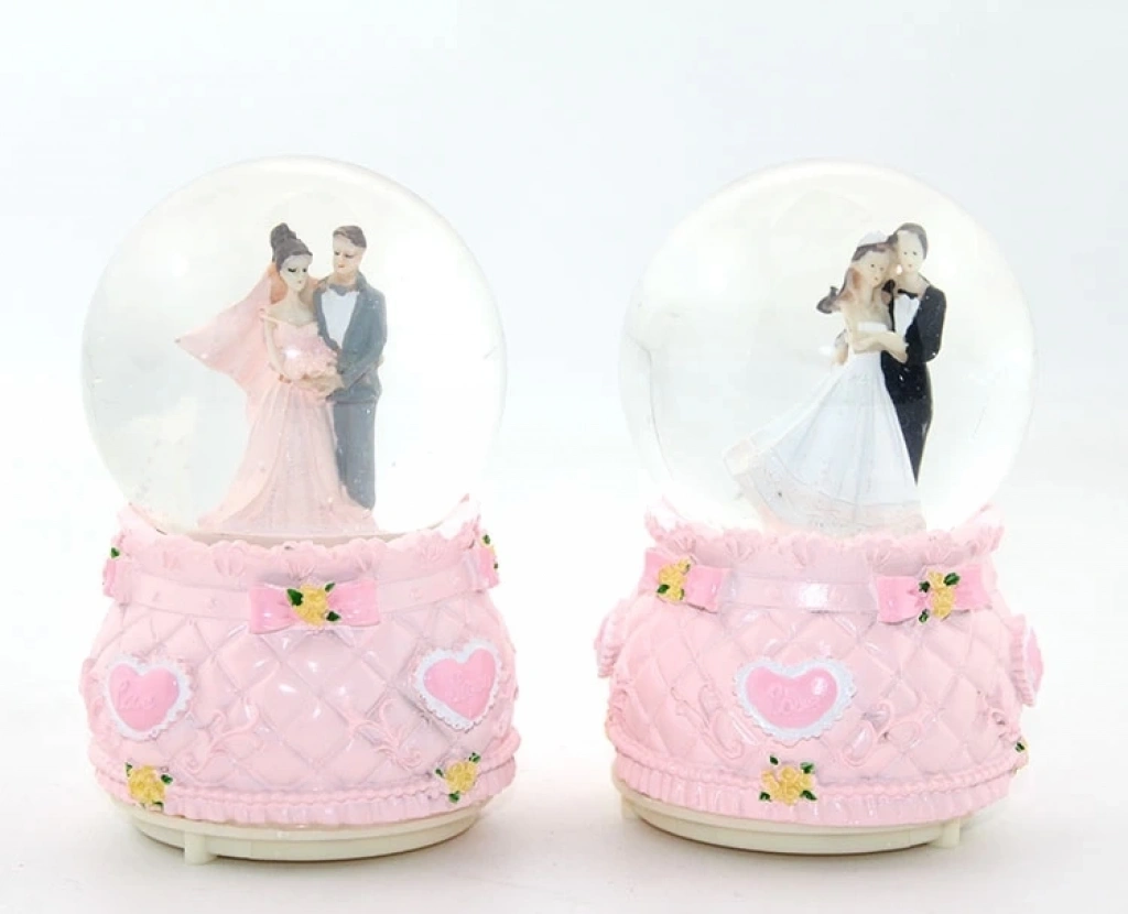 Pilli Işıklı Müzikli Kar Küresi–Sevgili Çiçek Detay Figürlü Eğlenceli Masaüstü Biblo, LED Aydınlatmalı Dekoratif Hediyelik Kar Küresi
