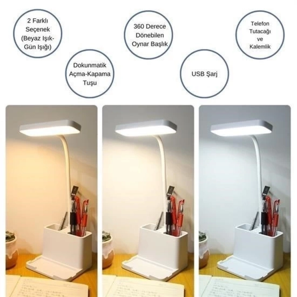 Kalemlikli USBli Dokunmatik 3 Kademeli 360 Derece Özel Göz Korumalı led Lityum Masa ası