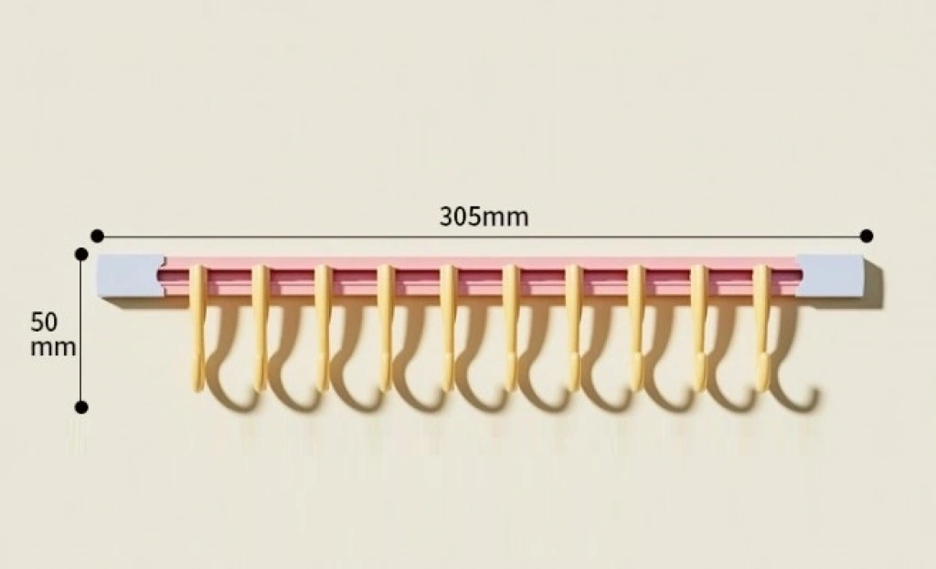 Mey İthalat® 10 Kancalı Raylı Mutfak ve Banyo Düzenleyici Askı 30 cm