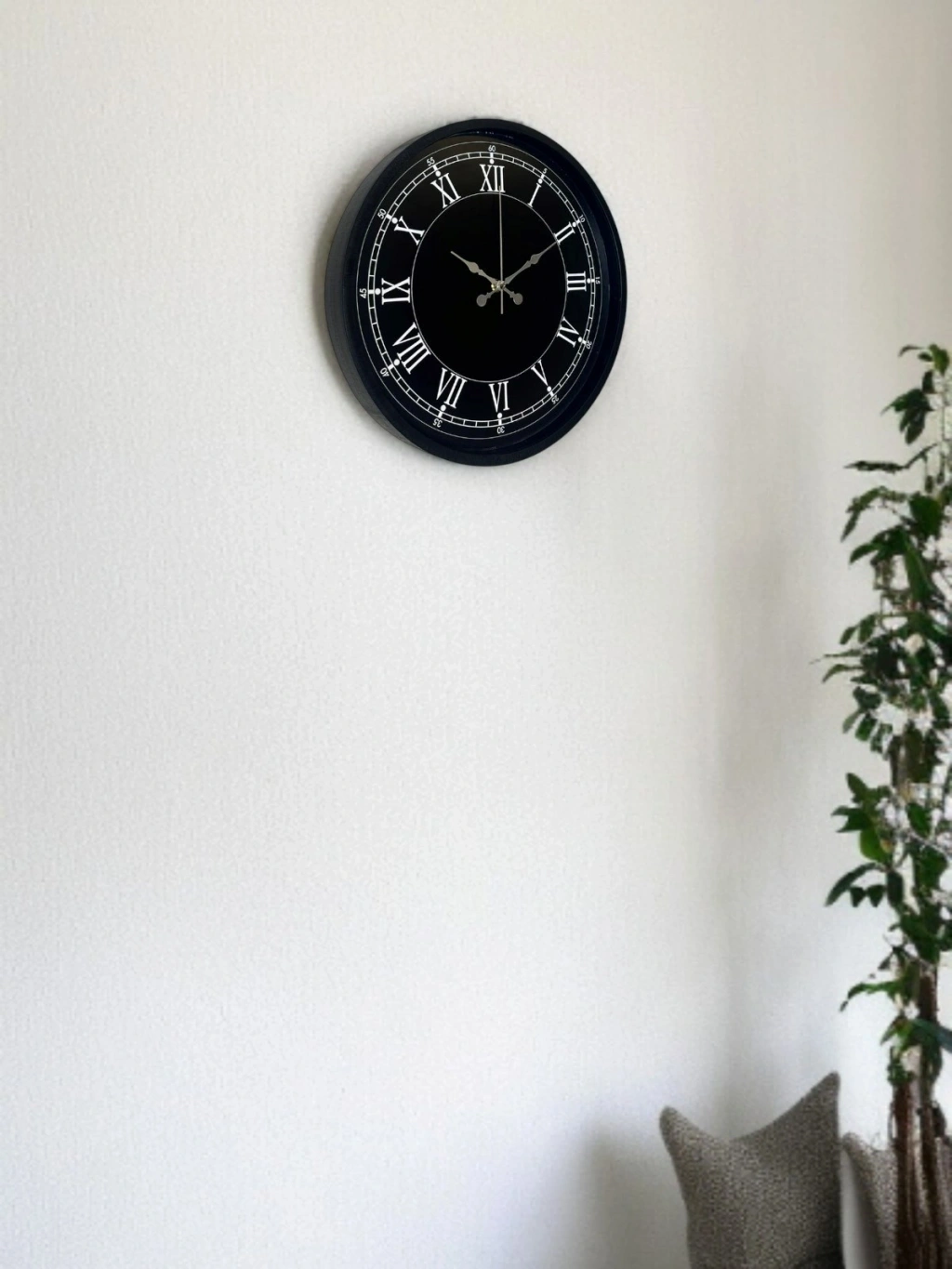 Klasik Roma rakamlarıyla tasarlanan bu 36 cm siyah duvar saati, zamansız şıklığı ve güçlü duruşuyla bulunduğu ortama karakter kazandırır. Siyah kadran üzerine yerleştirilen beyaz Roma rakamları, saatin hem estetik görünümünü hem de okunurluğunu artırır.