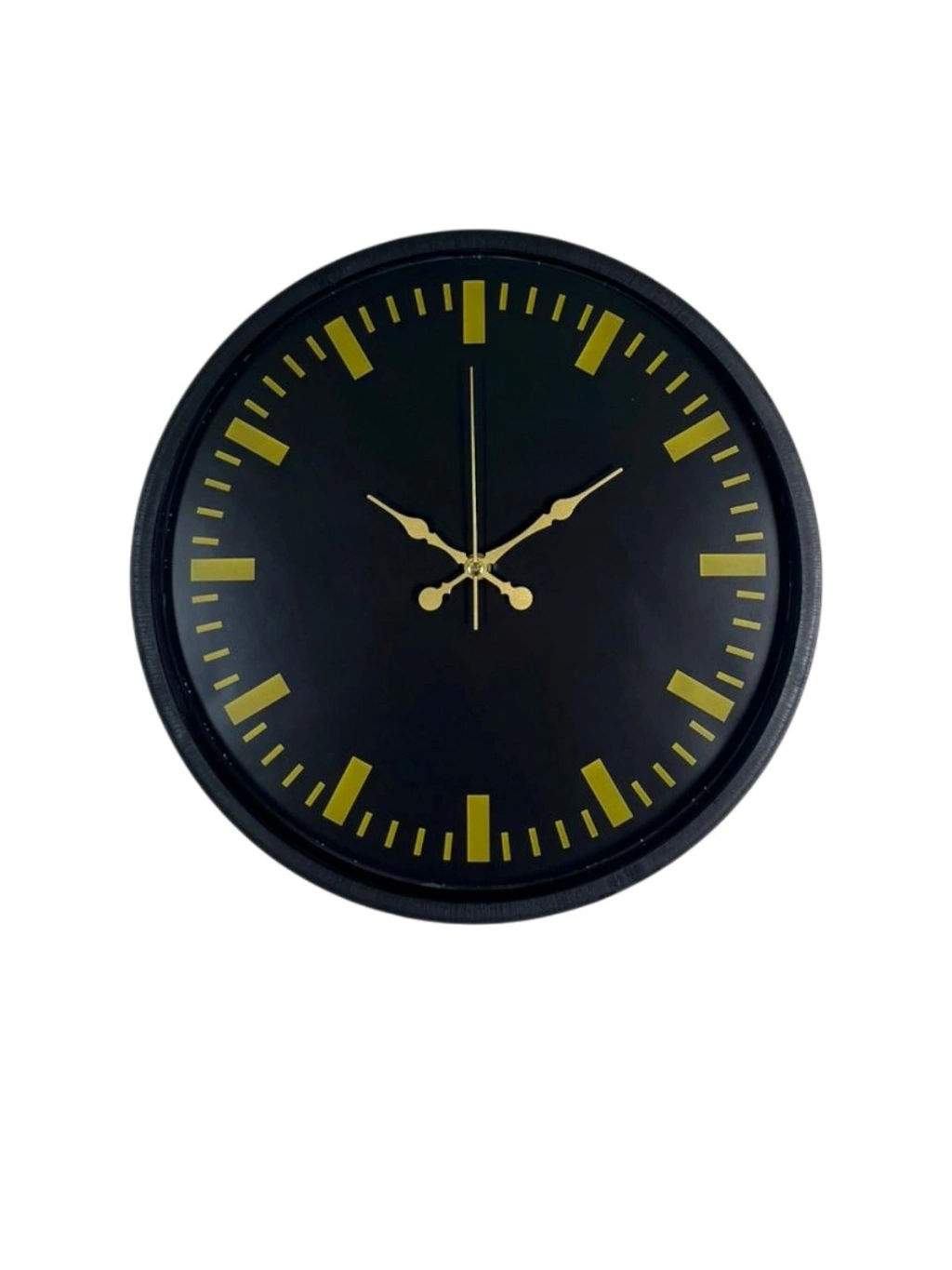 Rakam kullanılmadan tasarlanan çizgi indeksli kadranı ile bu 36 cm siyah duvar saati, modern dekorasyonun sade ve güçlü temsilcilerinden biridir. Mat siyah zemin üzerine yerleştirilen gold çizgi göstergeler, saatin okunurluğunu artırırken minimalist bir şıklık sunar.