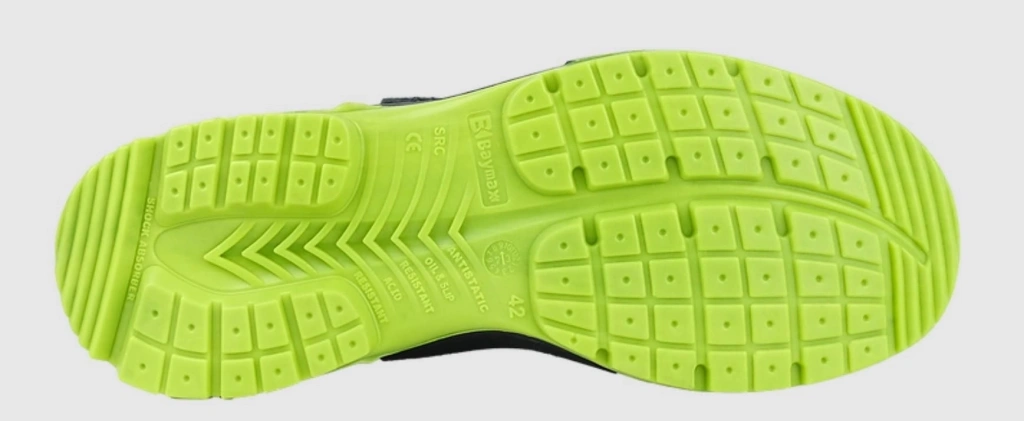Doğrudan enjekte edilen Çift Yoğunluklu PU/PU taban, Antistatik, Yağa Dayanıklı, Amortisörlü, Kaymaz, SR sertifikalı taban