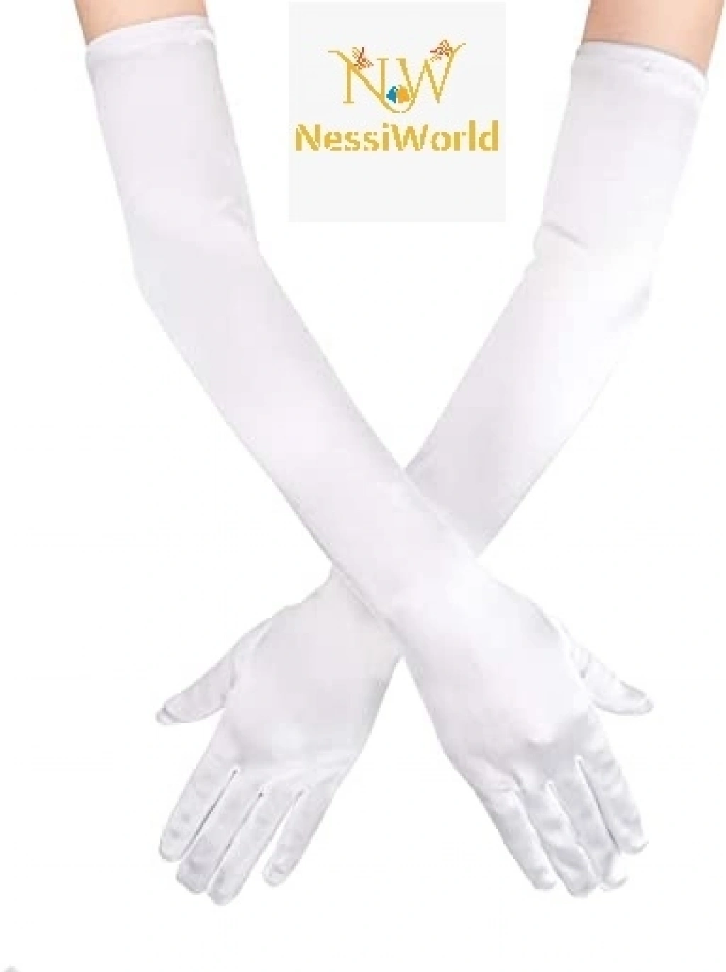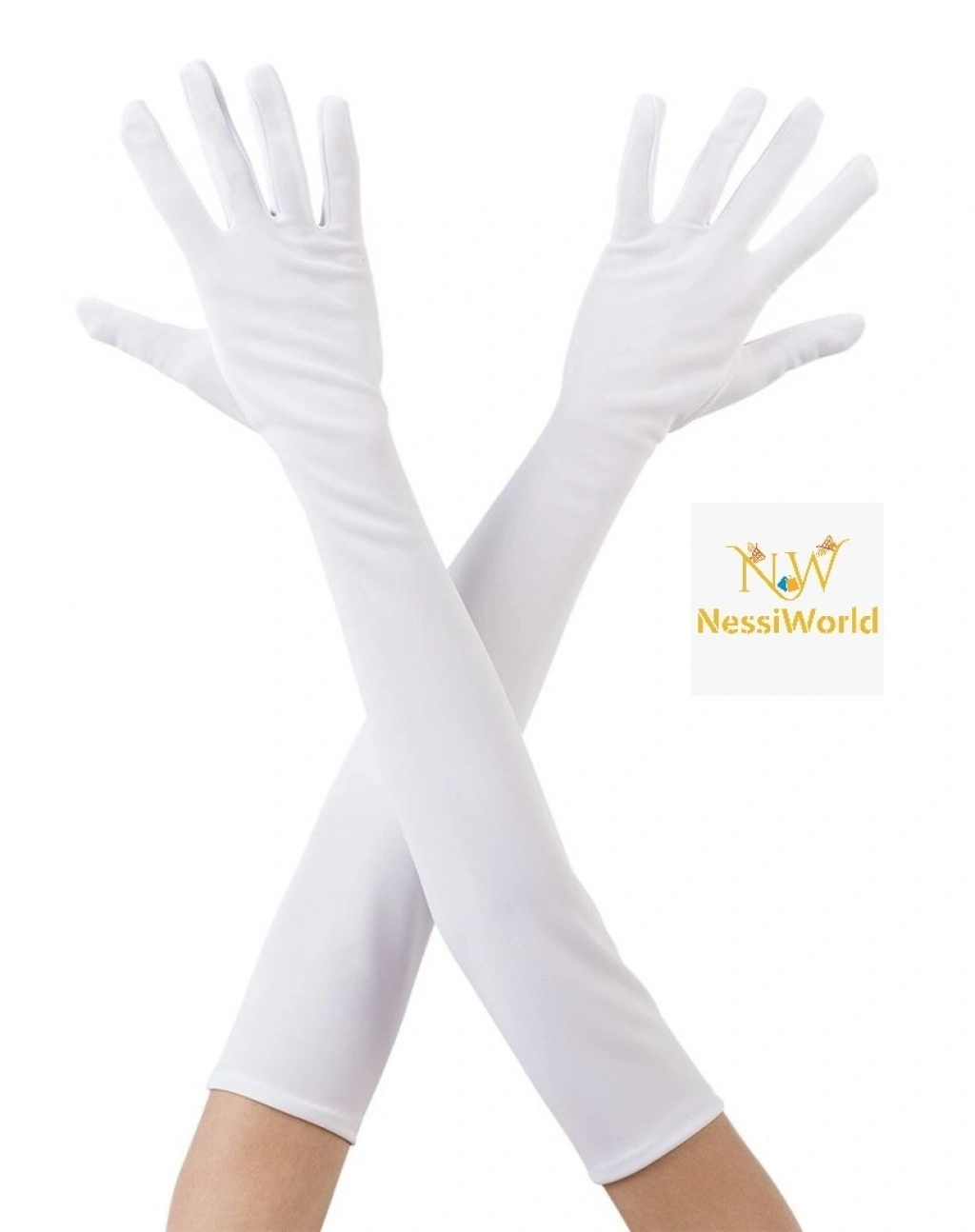 Mey İthalat® Beyaz Renk Dirseğe Kadar Uzun Kumaş Eldiven 40 cm