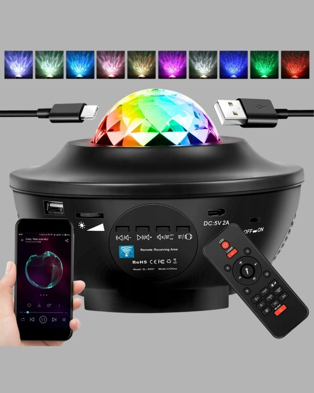 Mey İthalat® Galaxy Yıldız Projektör Çok Renkli Ayarlı Parlaklık Uzay Atmosfer Işığı