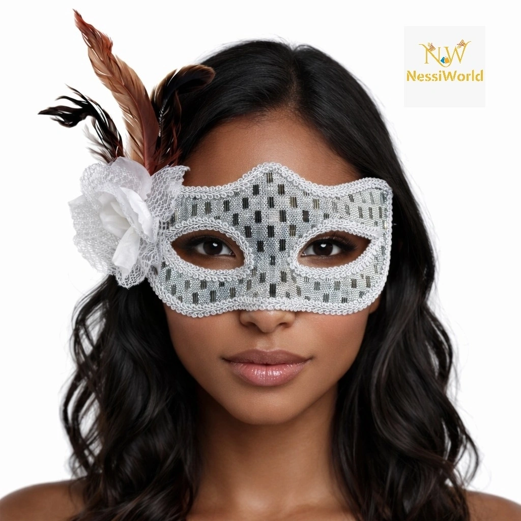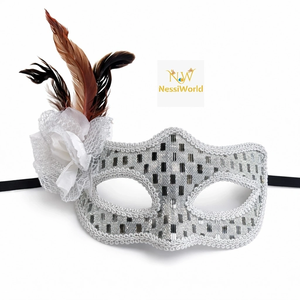 • Mey İthalat® Gümüş Renk Tüylü Balo Maskesi Kadın Parti Aksesuarı