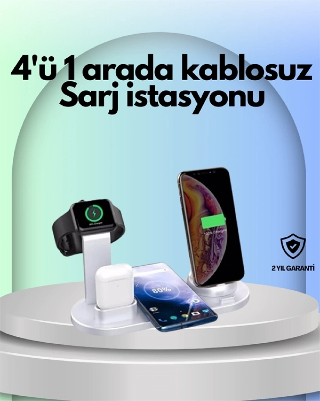Apple kullanıcıları için özel olarak optimize edilen bu kablosuz şarj istasyonu, birden fazla cihazı aynı anda şarj etme ihtiyacını karşılamak üzere tasarlanmıştır. iPhone 8’den iPhone 13 Pro Max’e kadar kablosuz şarjı destekleyen tüm modellerle uyumludur. Ayrıca Apple Watch SE/6/5/4/3/2/1 serilerini ve AirPods 1, 2, 3 ile AirPods Pro modellerini de destekler.Klasik kablo dağınıklığını ortadan kaldıran bu istasyon sayesinde tek bir prizden dört farklı cihazı düzenli ve güvenli biçimde şarj edebilirsiniz. Saat için özel stand tasarımı ve kulaklık yerleştirme yuvası, cihazlarınızı yerleştirirken karışıklık yaşanmasını engeller.İşlevsel olduğu kadar güvenli de olan bu sistem, günlük kullanım için mükemmel bir çözüm sunar.