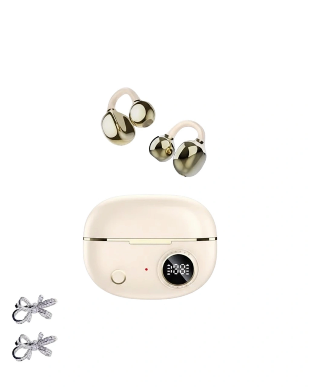 Kablosuz Bluetooth kulaklık, güvenli kulak klipsi tasarımı sayesinde gün boyu konforlu ve sabit bir kullanım sunar. Eller serbest iletişim imkânı sağlayan bu şık kulaklık, özellikle yoğun tempoda çalışan profesyoneller için ideal bir çözümdür. Kulak klipsi yapısı sayesinde kulakta kayma yapmadan sabit durur ve uzun süreli kullanımlarda rahatsızlık hissi oluşturmaz.Kompakt ve hafif tasarımı, bu Bluetooth kulaklığı günlük yaşamın vazgeçilmez bir parçası haline getirir. Çantanızda, cebinizde veya iş sırasında rahatlıkla taşıyabilir, aramalarınızı dilediğiniz her yerde yanınızda götürebilirsiniz. Günlük kullanımın yanı sıra seyahat, ofis, araç kullanımı ve yürüyüş gibi birçok senaryoda pratik bir kullanım sunar.Uzun pil ömrü sayesinde gün boyunca bağlantıda kalmanızı sağlar. Sürekli hareket halinde olan kullanıcılar için kesintisiz iletişim sunarak şarj endişesini minimuma indirir. Kristal netliğinde ses performansı ile aramalar sırasında karşı tarafı net bir şekilde duymanıza yardımcı olur ve sesinizi karşı tarafa berrak biçimde iletir.Zarif ve modern görünümüyle bu Bluetooth kulaklık, modayı ve işlevselliği bir araya getirir. Şık tasarımı sayesinde yalnızca teknolojik bir ürün değil, aynı zamanda stilinizi tamamlayan bir aksesuar olarak da öne çıkar.Set içeriğinde 1 adet Bluetooth kulaklık, 1 adet veri kablosu, 1 adet kullanım kılavuzu bulunur. Ayrıca 2 adet kurdele küpe hediyeli olarak gönderilir. Hem kendiniz hem de sevdikleriniz için şık ve kullanışlı bir hediye alternatifidir.
