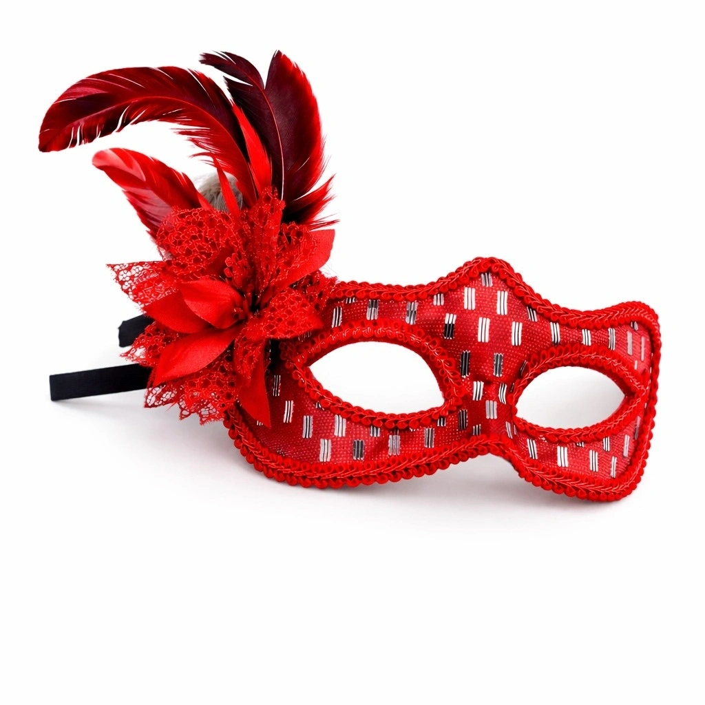 Mey İthalat® Kırmızı Tüylü Balo Maskesi Kadın Parti Aksesuarı