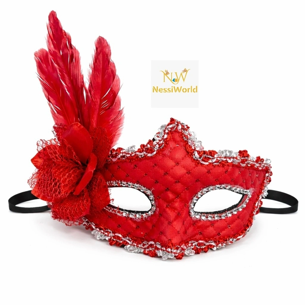 Mey İthalat® Kırmızı Tüylü Venedik Lüks Balo Maskesi