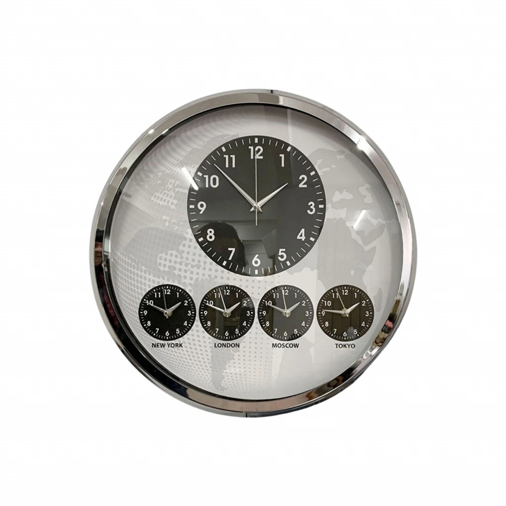 Merkezde yer alan büyük ana saat günlük kullanım için net ve kolay okunabilir yapı sunarken, alt bölümde bulunan New York – London – Moscow – Tokyo zaman göstergeleri uluslararası iş yapan firmalar için fonksiyonel bir çözüm sağlar.