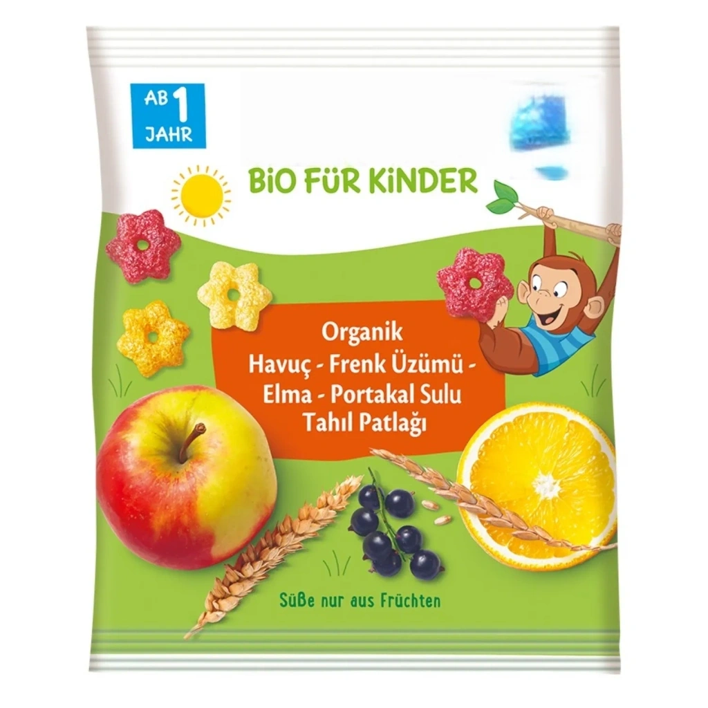 Mey İthalat® Organik Havuç Frenk Üzümü Elma Portakal Sulu Tahıl Patlağı 30 Gr