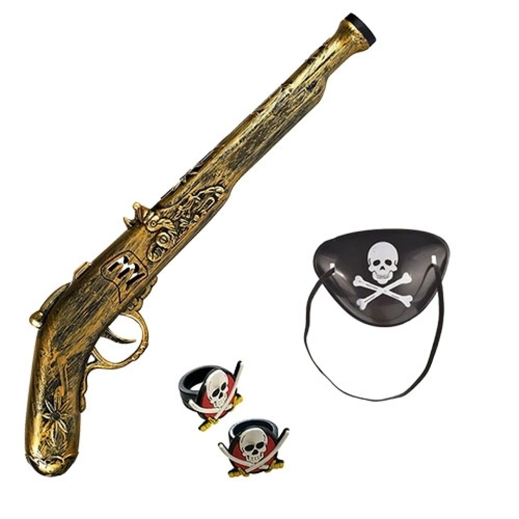 • Mey İthalat® Oyuncak Korsan Tabancası Korsan Maskesi ve 2 Adet Korsan Yüzüğü Seti