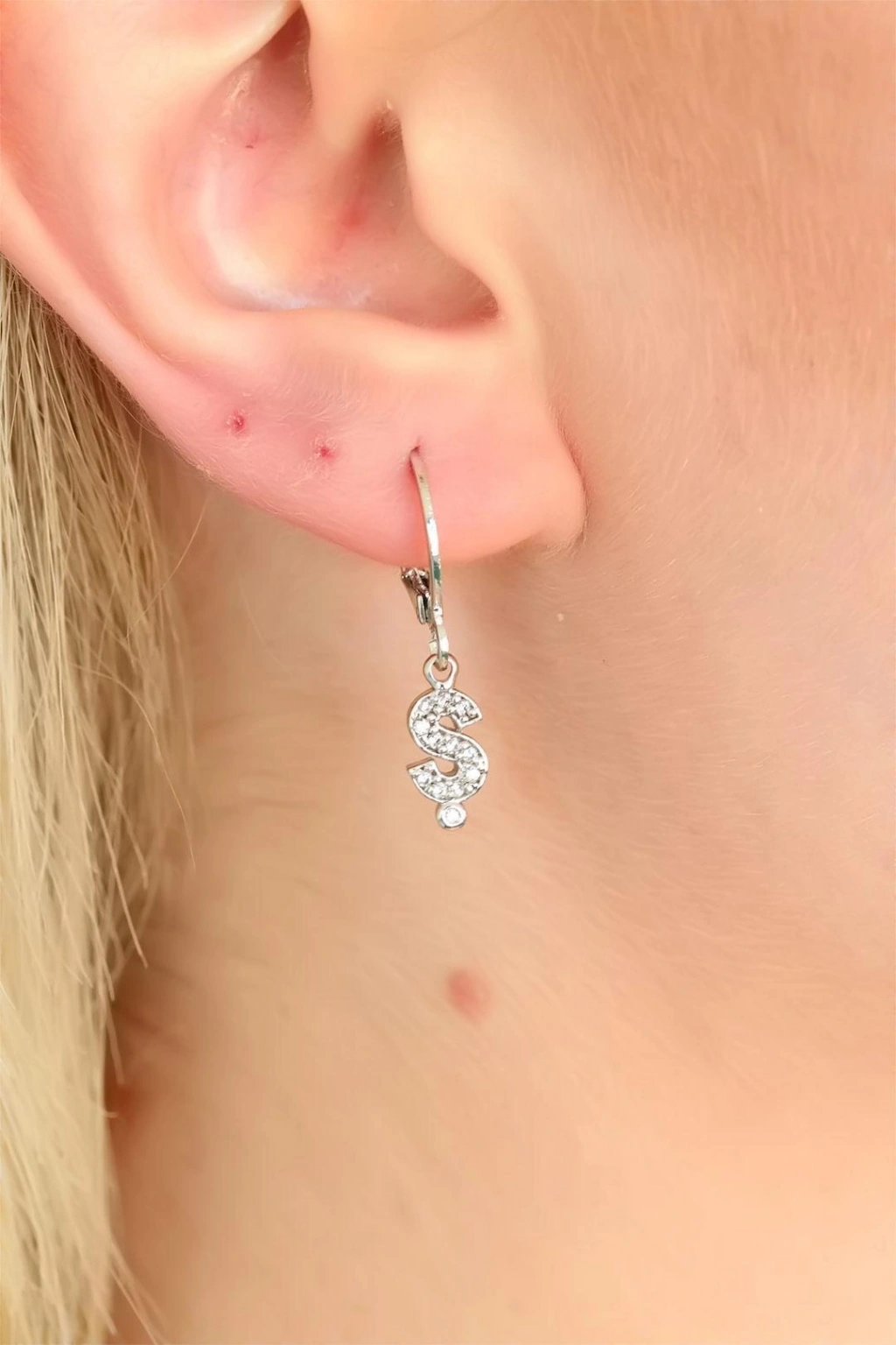 Silver Renk Zirkon Taşlı Ş Harf Bayan Küpe