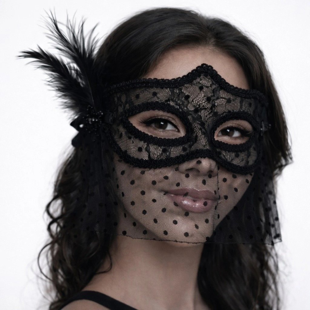 Gizemli ve şık bir görünüm isteyenler için tasarlanmış Siyah Dantel Tüllü Peçeli Parti Maskesi, zarif detaylarıyla dikkat çeker.