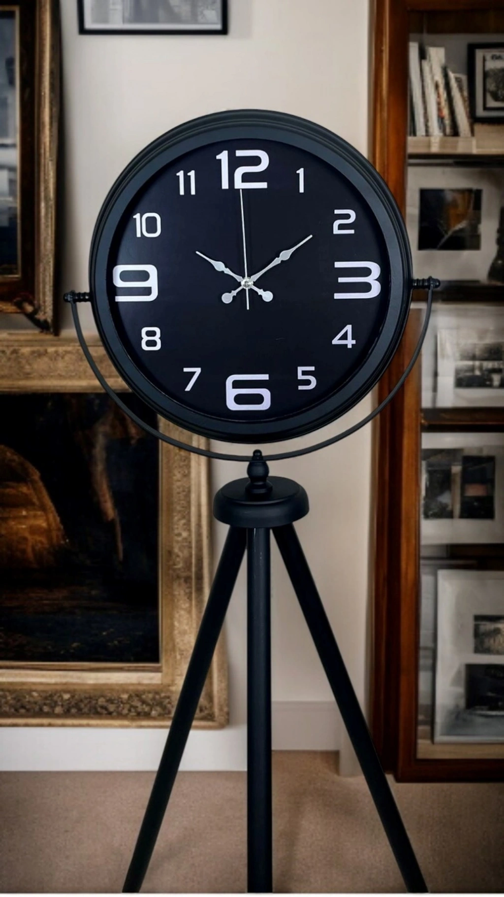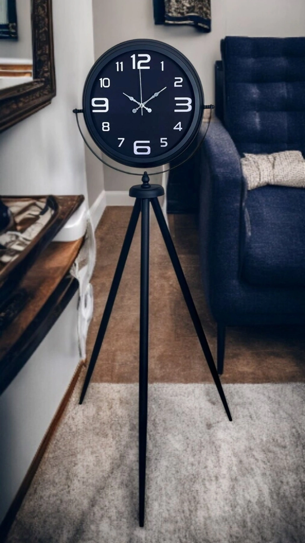 Konforlu kullanım için tercih edilen SESSİZ (akıcı) MEKANİZMA, tıkırtı sesini minimuma indirir. Bu sayede salon, ofis, çalışma odası veya dinlenme alanlarında rahatsız etmeden kullanılabilir. Hem dekoratif hem işlevsel olan bu tripod ayaklı saat; antrelerde, salon köşelerinde, ofis girişlerinde, kafe/restoranlarda ve mağaza vitrinlerinde şık bir tamamlayıcı olarak öne çıkar.