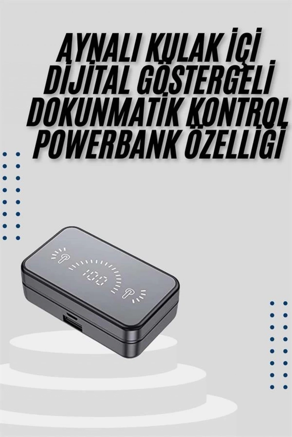• Mey İthalat® Yeni Nesil Kablosuz Kulaklık Aynalı Powerbank Özellikli Bluetooth Bağlantılı Dijital Göstergeli