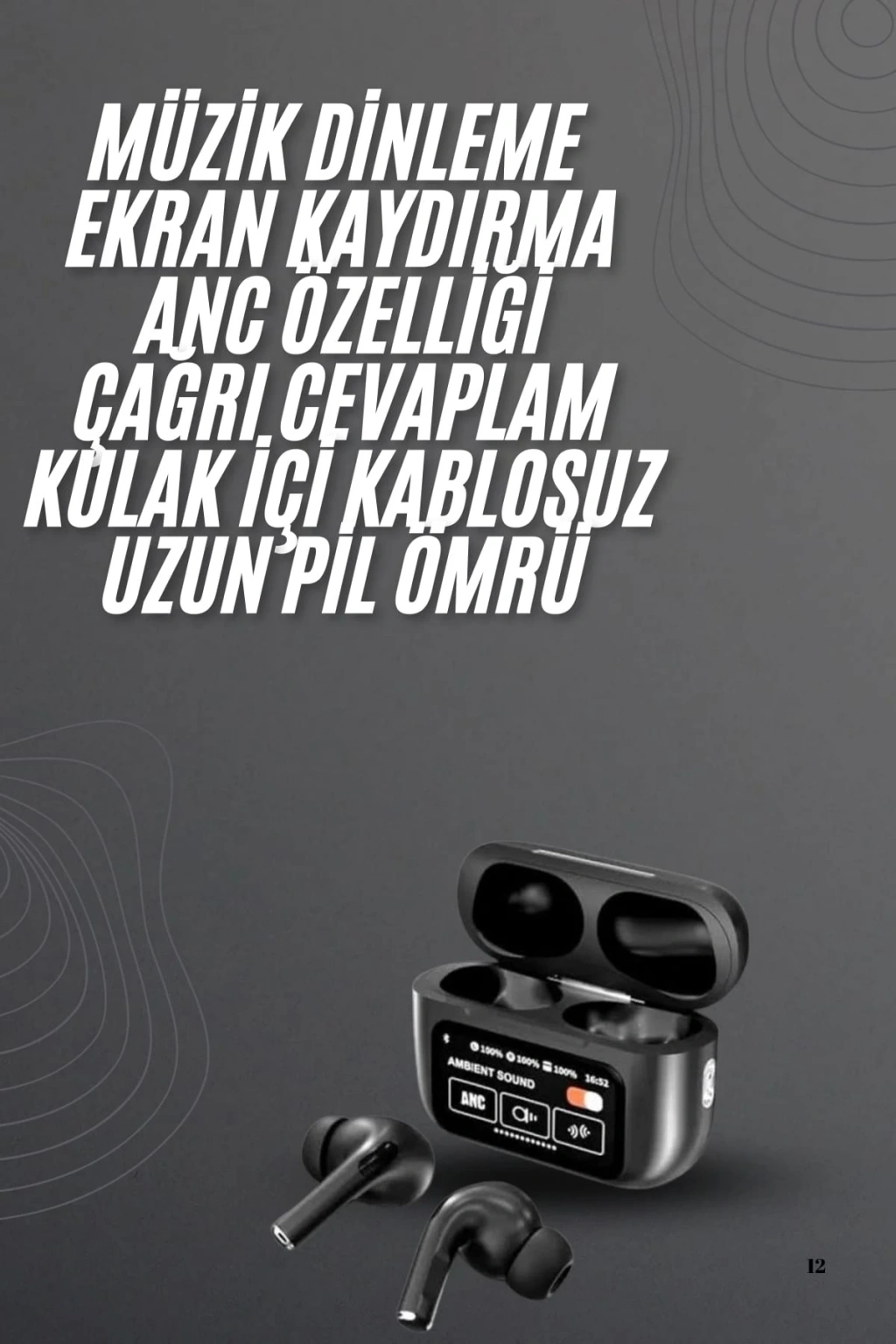 Bu kulaklık, müzik dinlemek ve arama yapmak için mükemmel bir deneyim sunuyor. Şarj durumunu ekrandan izleyebilme özelliği sayesinde pil bittiğinde endişelenmenizi engeller ve uzun süre kesintisiz kullanım sağlar. 2. Nesil teknolojisi ile rahat bir kullanım sunarak, uzun süreli kullanımlarda bile konforlu bir deneyim sağlar. Şık siyah tasarımı her ortama uyum sağlarken, dayanıklılığı ile uzun ömürlü bir kullanım garanti eder. 2 yıl ithalatçı garantisi ile güvenli bir alışveriş deneyimi sağlar ve olası teknik sorunlarda destek almanızı mümkün kılar.Aktif gürültü önleme (ANC) özelliği, dış dünyadaki gürültüyü engelleyerek müziğinizi tam anlamıyla keyifle dinlemenizi sağlar. Dahili mikrofon sayesinde net ve kesintisiz aramalar yapabilir, eller serbest kullanım ile rahatça konuşabilirsiniz. Suya ve tere karşı dayanıklılığı, yağmurlu havalarda veya spor yaparken kullanım kolaylığı sunar. Bluetooth 5.0 teknolojisi ile hızlı ve stabil bağlantılar kurar, geniş uyumluluk sunar. Dokunmatik kontrol özelliği bulunmayan tasarımı, sade ve kullanıcı dostu olup müziğinizi rahatlıkla kontrol etmenizi sağlar. Çift telefon desteği ile aynı anda iki cihazla bağlanarak daha pratik bir kullanım deneyimi elde edebilirsiniz.