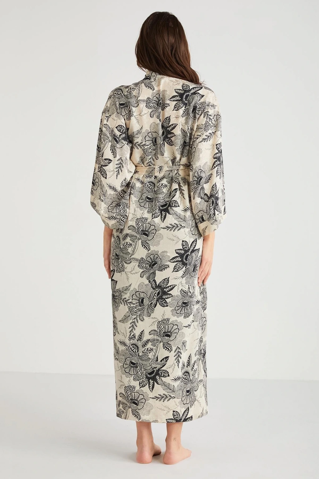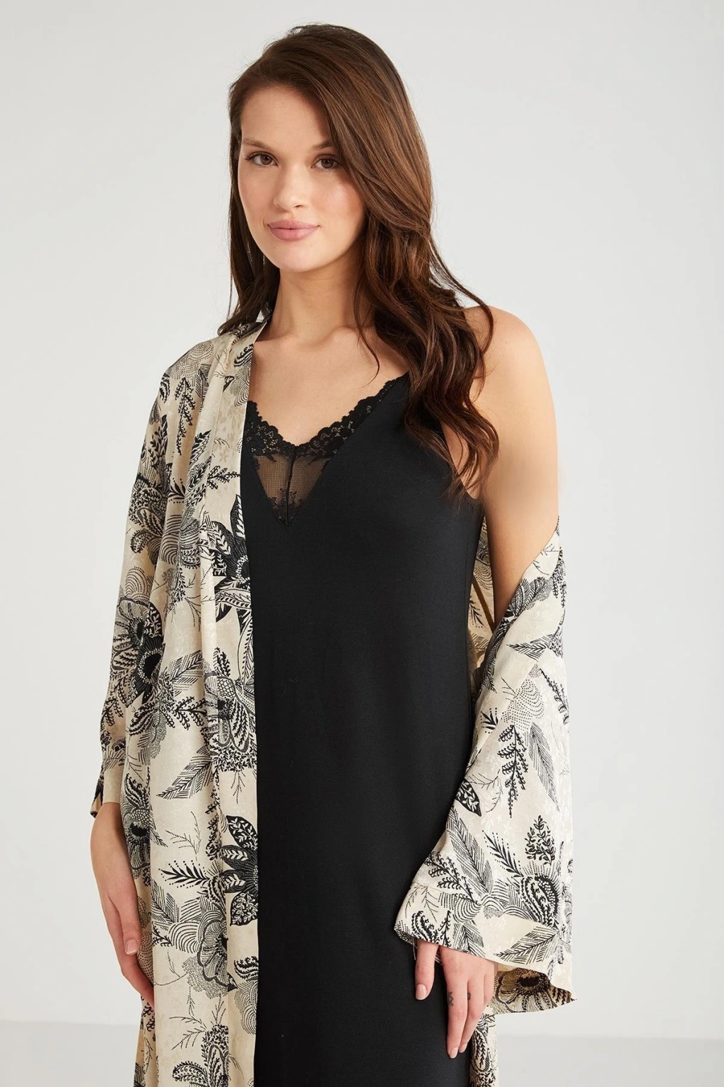 Arias Closet Tül Sabahlık ve Viskon Çiçek Baskılı Dantelli Kısa Gecelik Takım
