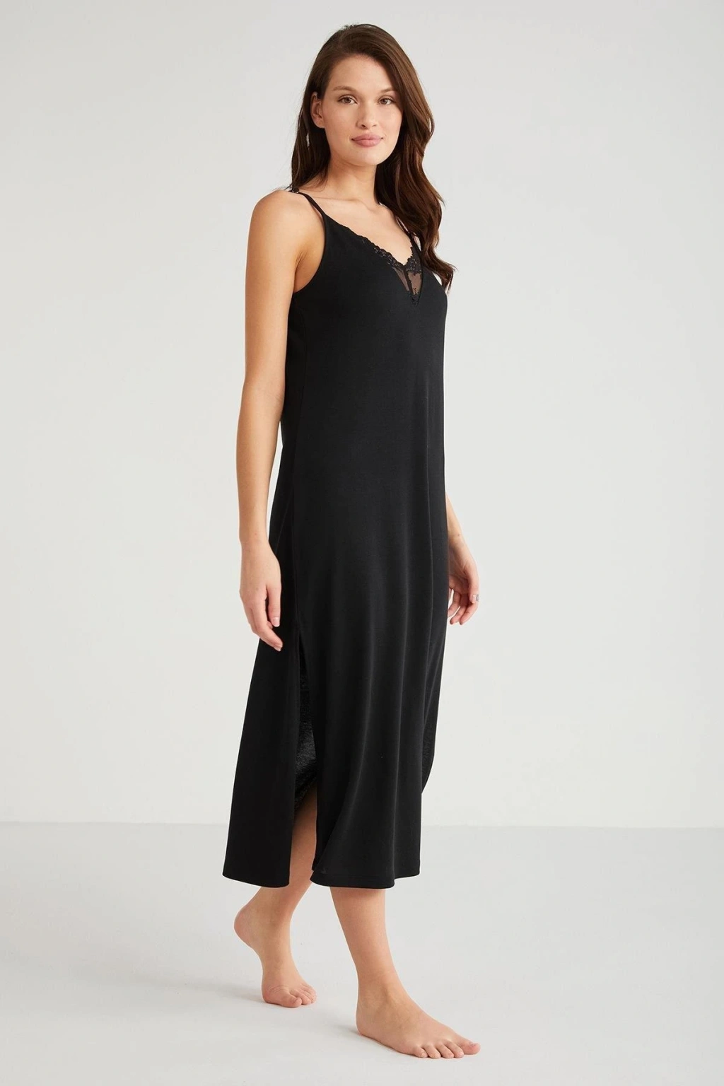 Arias Closet Haki Transparan Dantel İşlemeli Tül Yırtmaçlı 2li Gecelik Takımı